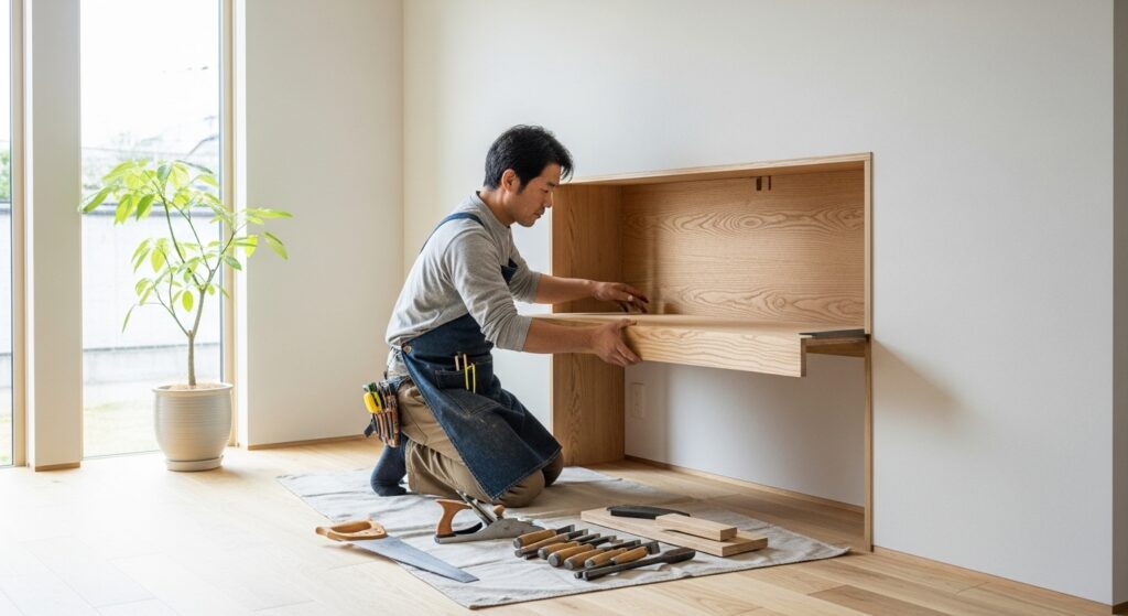 建築の知識を活かすという意味では、ワークデスクを単なる家具ではなく「壁・下地・構造」と一体で計画することが重要です。